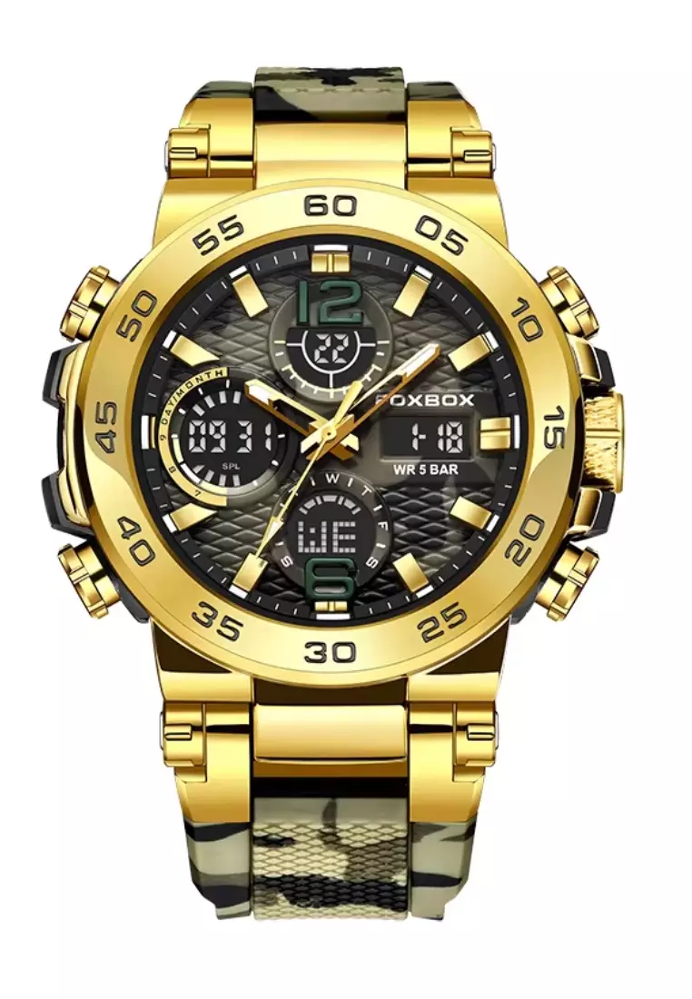 FOXBOX Military Style Chronograph, Unisex Digital/Analogue Quartz Watch, Camouflage Silicone