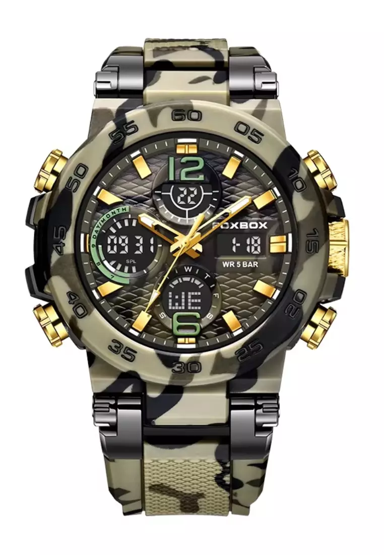 FOXBOX Military Style Chronograph, Unisex Digital/Analogue Quartz Watch, Camouflage Silicone