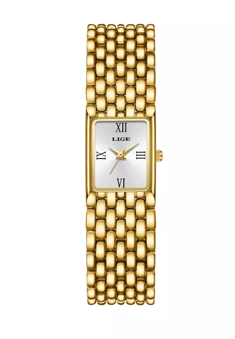 LIGELadies Rectangular Quartz Watch, 29X20mm, IP Gold Color Stainless Steel, Metal Bracelet12400.003099.00