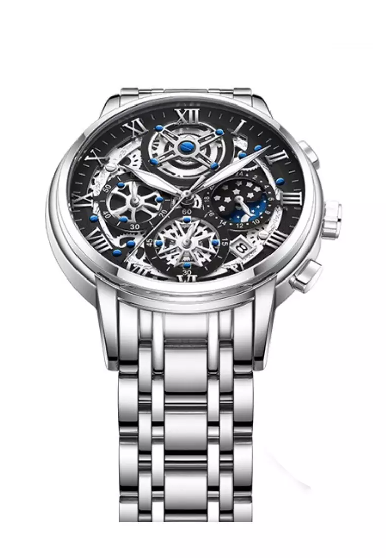 LIGESkeleton Unisex Stainless Steel Chronograph Quartz watch 42mm on Steel Bracelet17900.004499.00