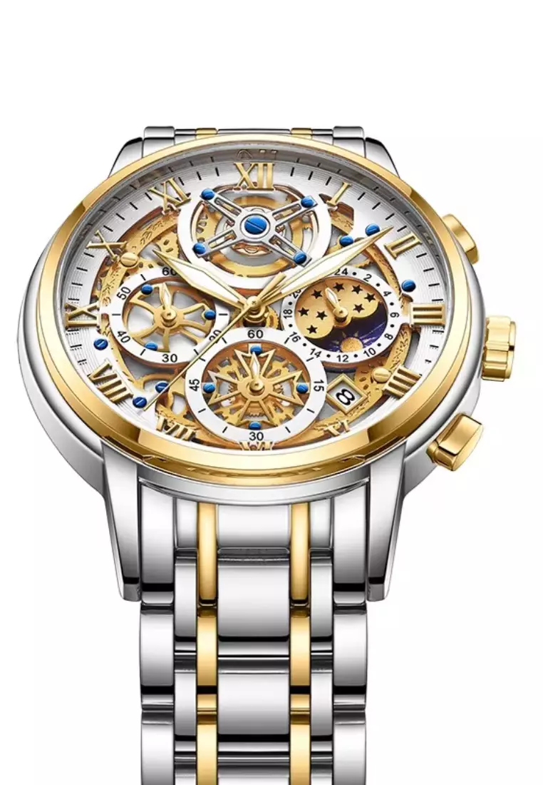 LIGESkeleton Unisex Stainless Steel Chronograph Quartz watch 42mm on Steel Bracelet17900.004499.00