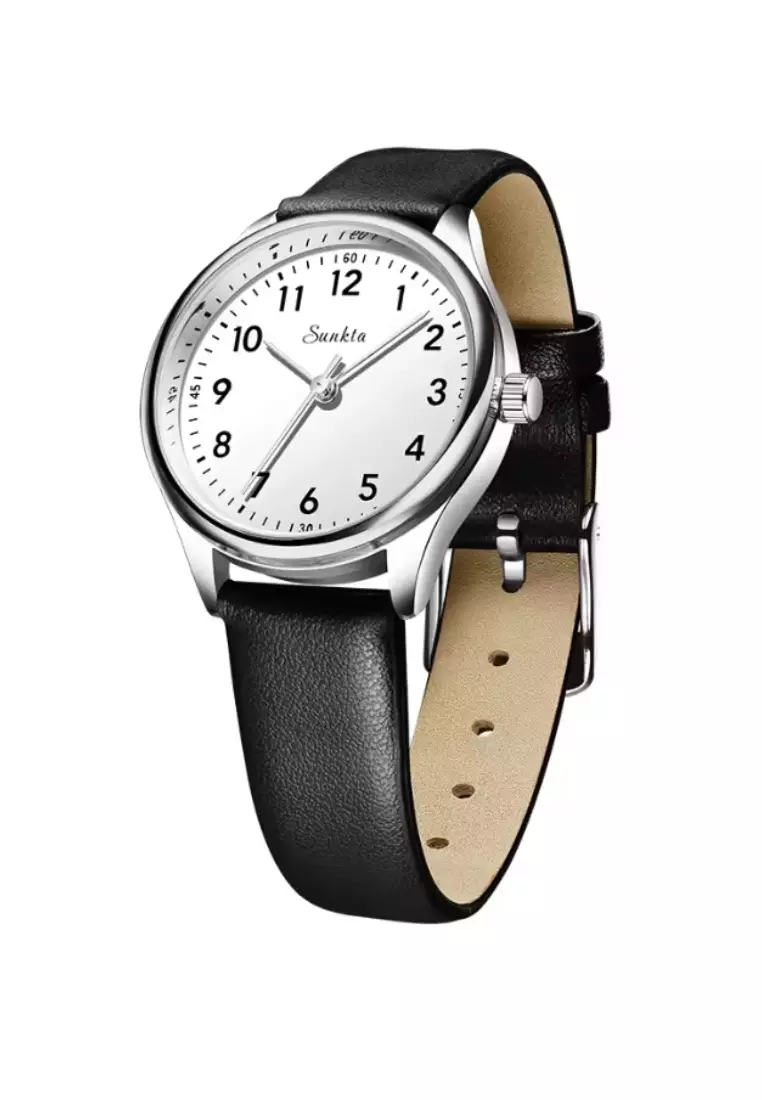 SUNKTA Round Ladies Quartz Watch, Light Weight Metal Alloy, Leather Strap