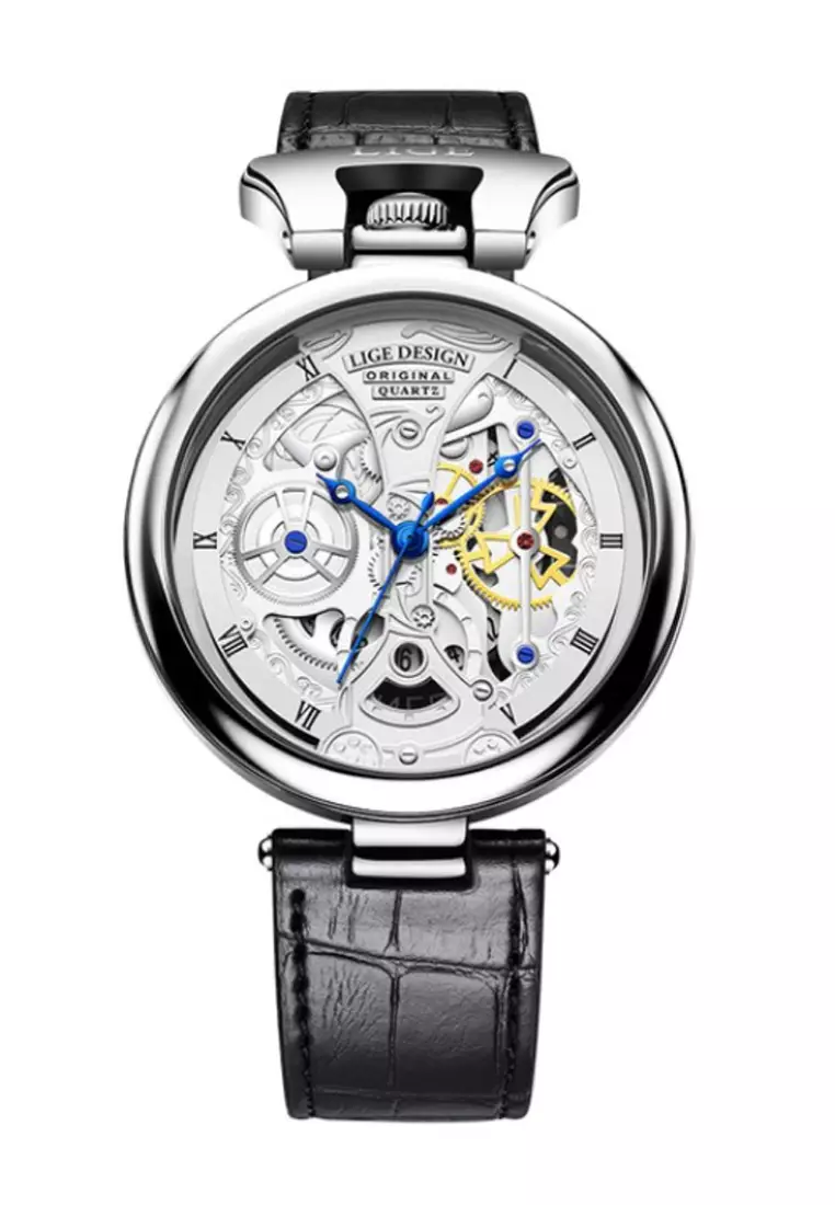 LIGEUnisex 45mm Stainless Steel Quartz Watch, Hollow Dial on Black Leather Strap12400.003099.00
