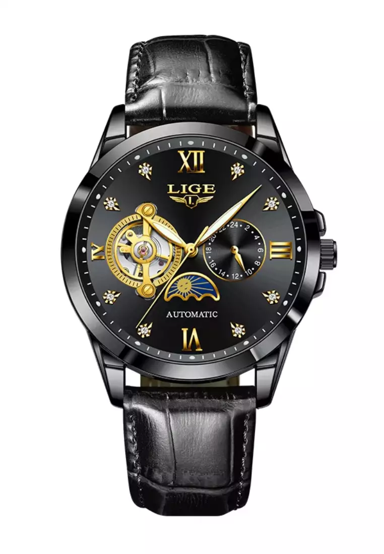 LIGEUnisex AUTOMATIC IP Black Stainless Steel Watch 42mm, Black Dial, 22mm Black Leather Strap21100.005299.00