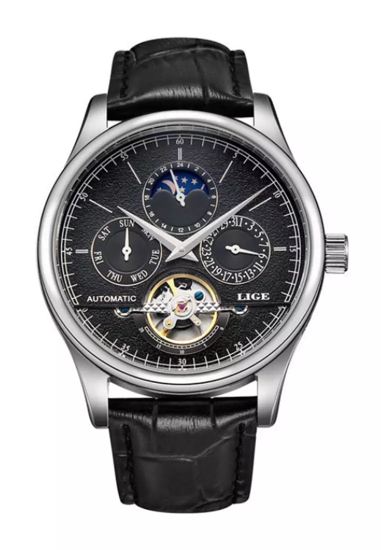 LIGEUnisex AUTOMATIC Stainless Steel Watch 44mm, Black Dial and Leather Strap21100.005299.00