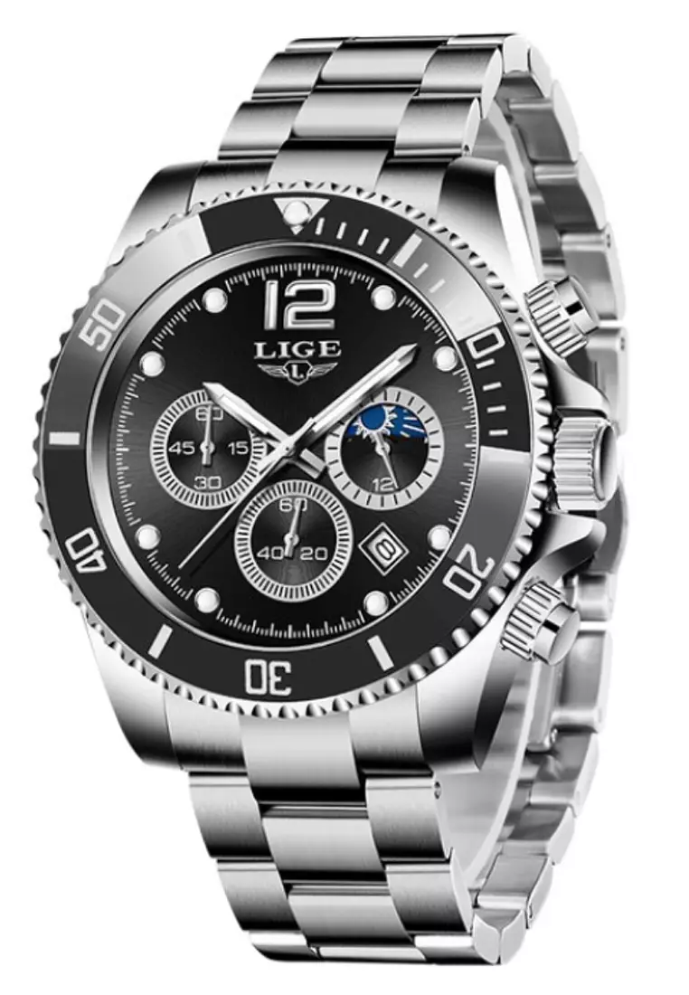 LIGEUnisex Chronograph Diver's Stainless Steel Quartz Watch with turning Bezel on Steel Bracelet17000.004299.00