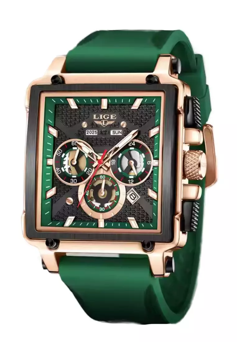 LIGEUnisex Chronograph IP Pink Gold Color Metal Alloy Quartz Watch, 44mm W x 44mm H, Silicone Strap15500.003899.00
