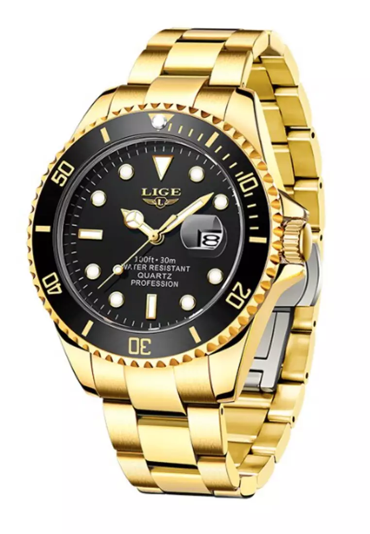 LIGEUnisex Classic Diver's Gold Color Stainless Steel Quartz Watch with turning Bezel on Gilded Steel Bracelet17200.004299.00