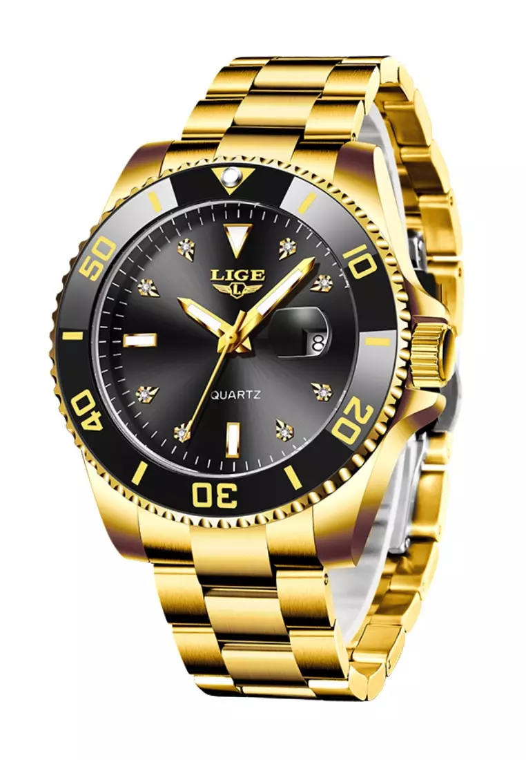 LIGEUnisex Classic Diver's IP Gold Stainless Steel Quartz Watch, IP Gold Stainless Steel Bracelet17800.004499.00
