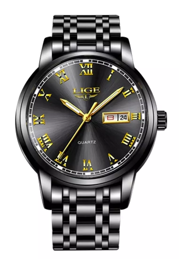 LIGEUnisex Day/Date IP Black Stainless Steel Quartz Watch on Steel Bracelet9600.002399.00