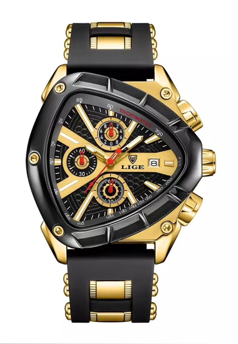 LIGEUnisex IP Gold & Black Stainless Steel Chronograph Quartz watch, 48mm diameter, with Rubber and Metal Strap17800.004499.00