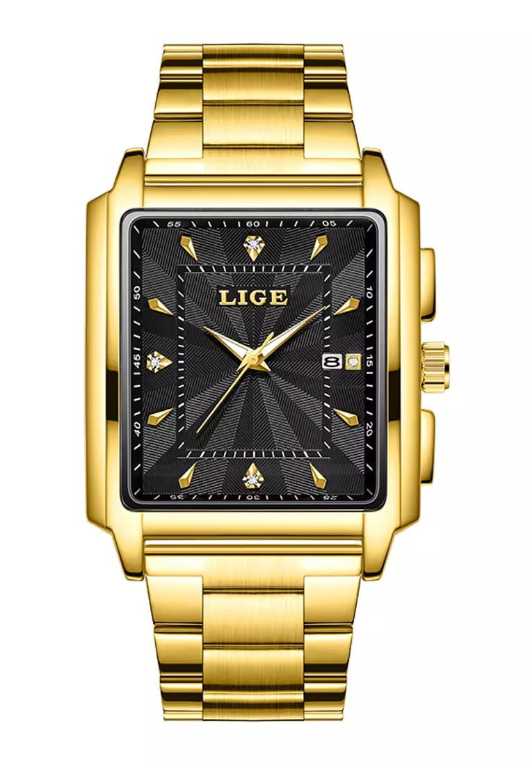 LIGEUnisex IP Gold Stainless Steel Quartz Watch, Black dial, IP Gold Steel Bracelet15500.003899.00