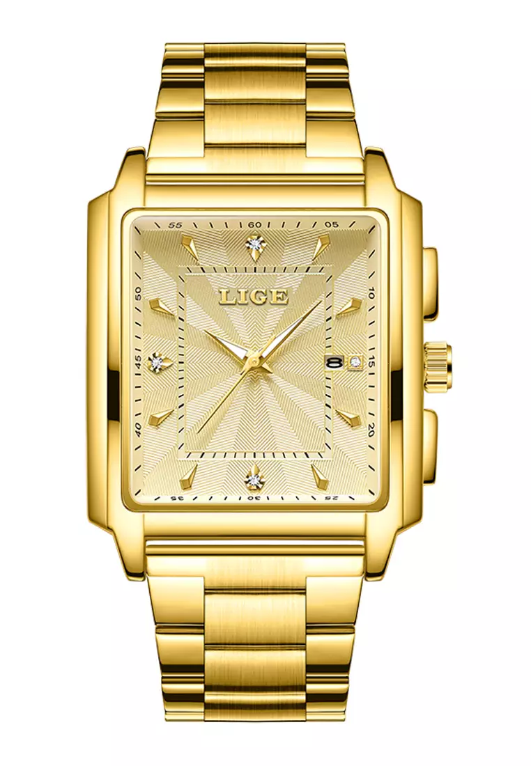 Unisex IP Gold Stainless Steel Quartz Watch, Gold dial, IP Gold Steel Bracelet