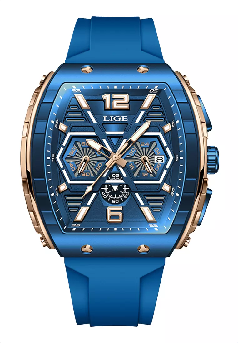 LIGEUnisex Tonneau Shaped IP Blue & Rose Gold Color Quartz Watch, Rubber Strap14700.003699.00