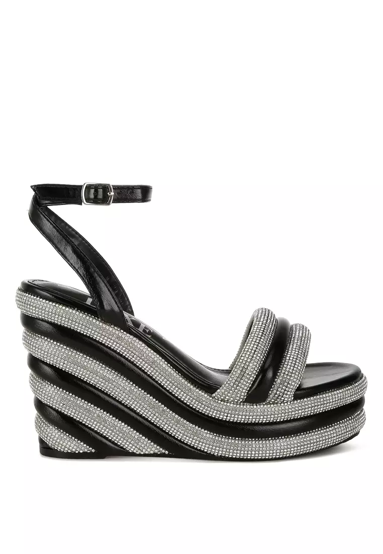 Black Rhinestone Studded Wedge Sandals