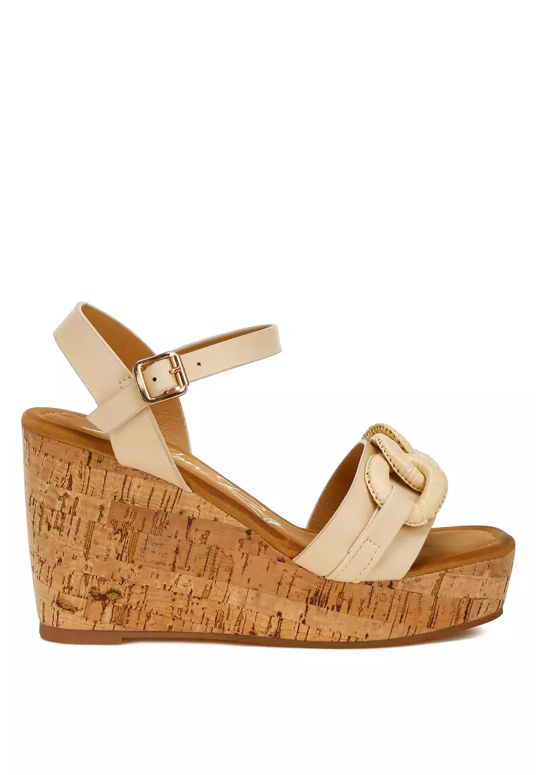 Cushion Chain Pin Buckle Wedges in Beige