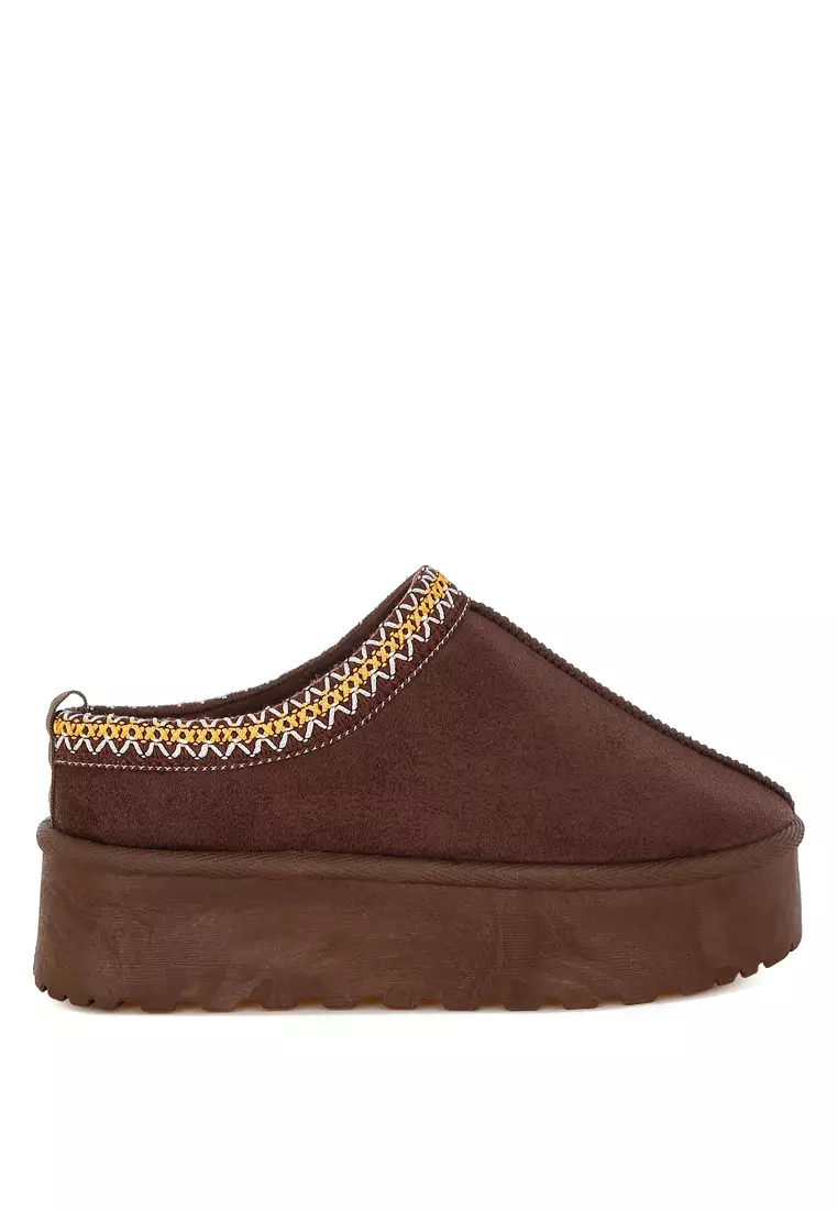 Embroidered Platform Classic Slip-On in Brown