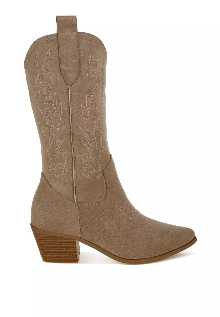 Embroidery Detail Cowboy Boots in Beige