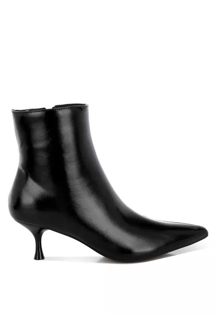 Faux Leather Kitten Heel Boots in Black