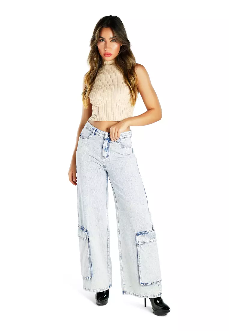 Light Blue Sassy Flap Ankle Pockets Denim