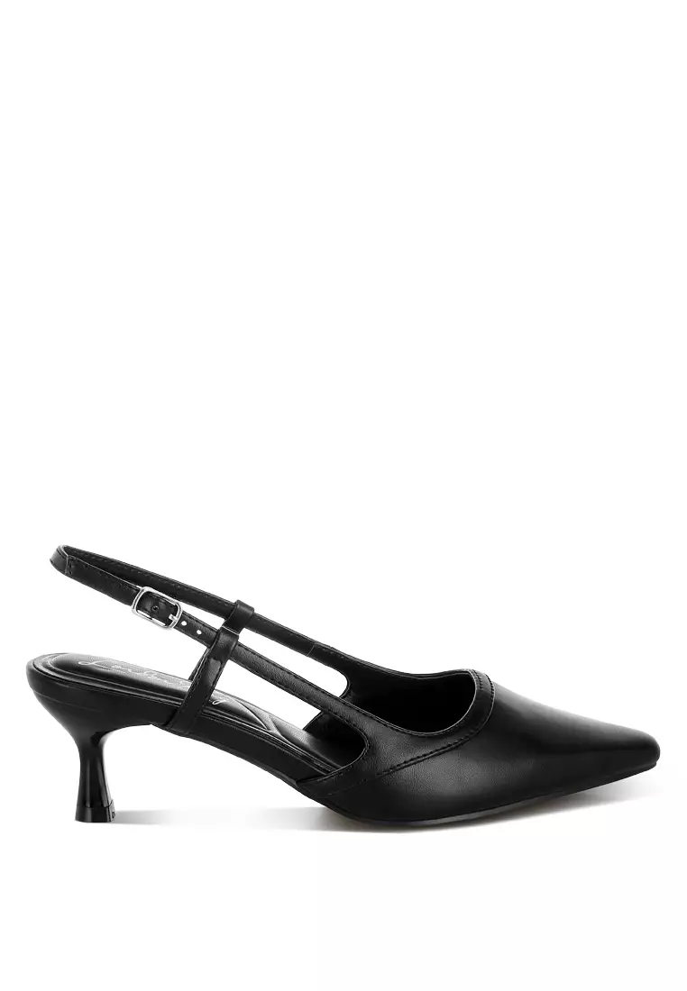 Slingback Pin Buckle Kitten Heels In Black