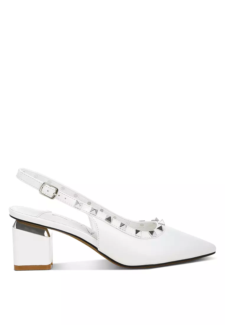 Stud Embellished Slingback Sandals in White