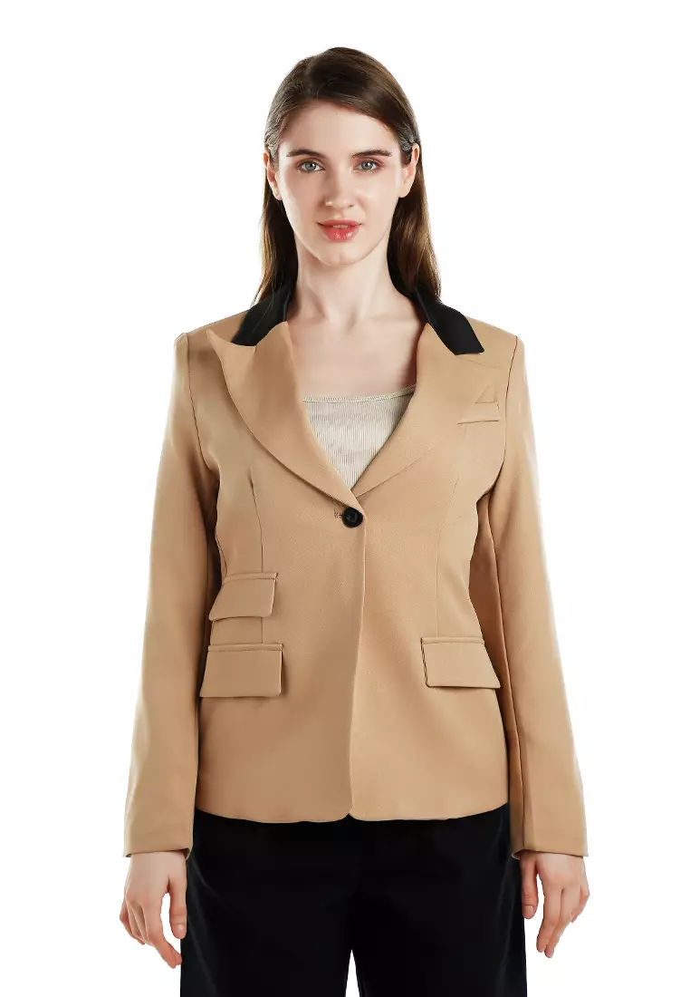 Two-Tone Lapel Blazer in Khaki