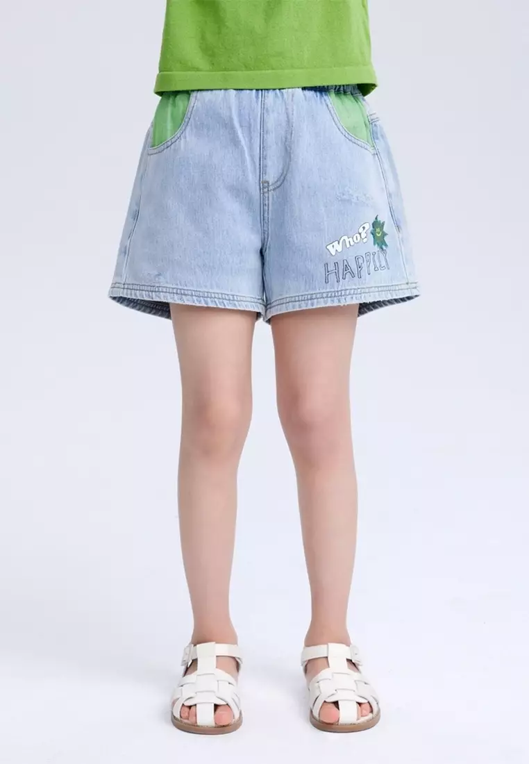 Two-Colour Pocket Geometric Embroidered Logo Denim Shorts