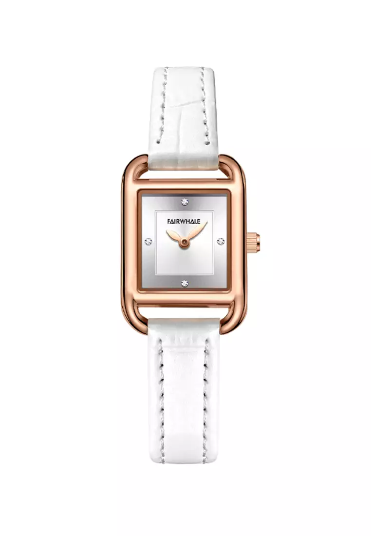 Mark FairwhaleLadies IP Rose Gold Color Stainless Steel Quartz Watch, 22mm, White Leather Strap11200.002799.00