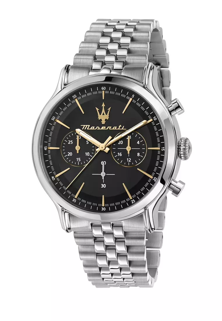 【2 Years Warranty】Maserati Epoca 42mm Black Dial Men's Stainless Steel Chronograph Quartz Watch R8873618017 With Luminous Hands
