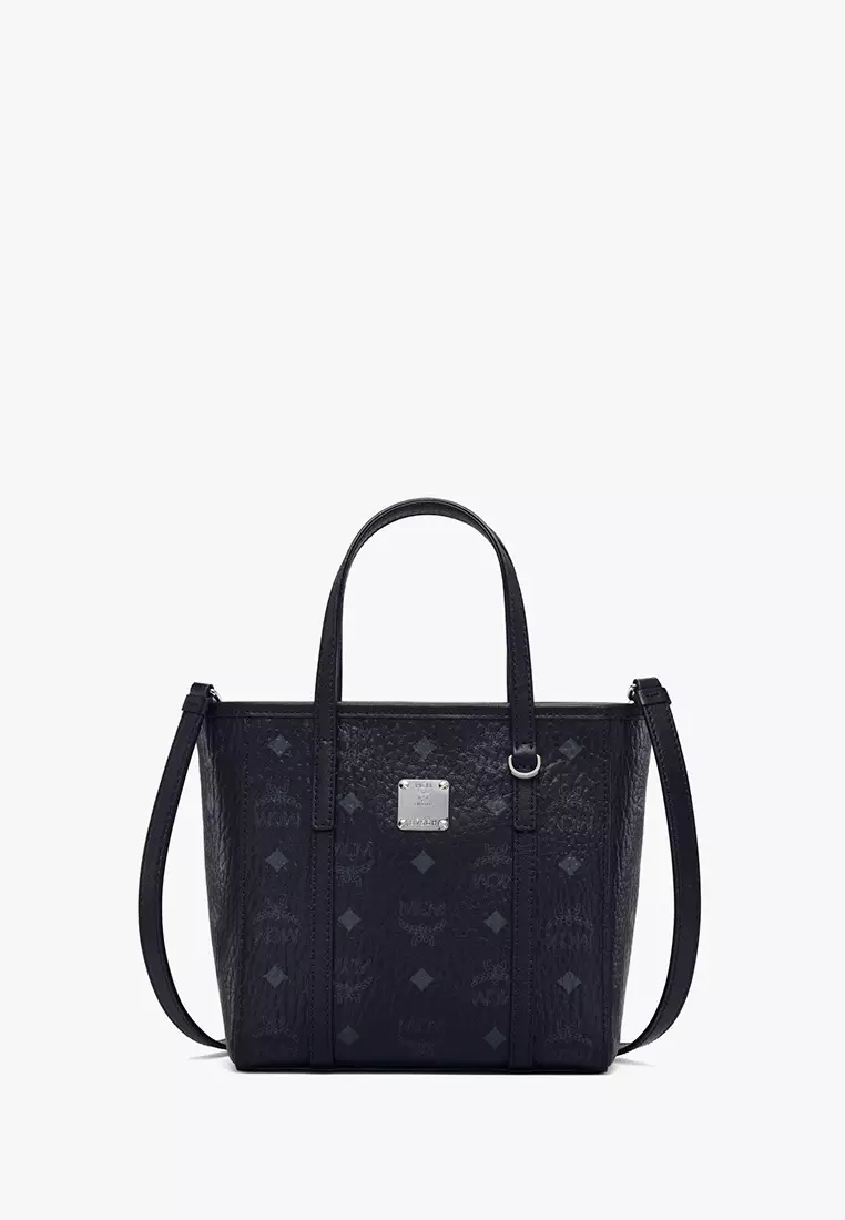 Visetos coated canvas with a nappa leather trim Nappa leather top handles Silver-toned cobalt metal hardware Cotton canvas lining