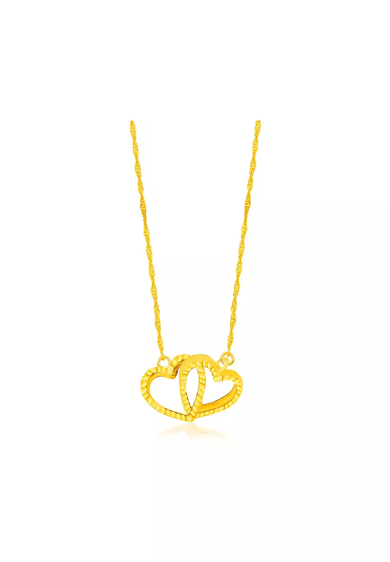 MJ Jewellery375/9K Gold Plain Double Heart Interlocking Pendant Necklace Set RK182A30025.0019940.00
