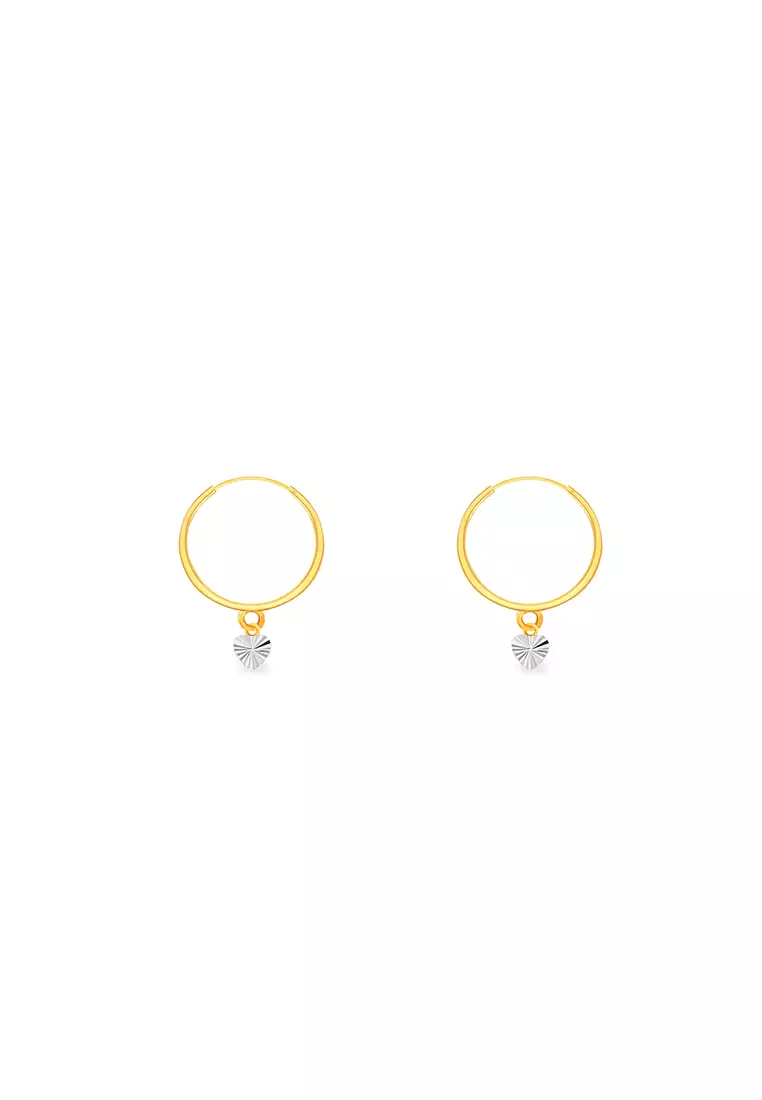 375/9K Gold Round Loop with Love Earrings S62 (M Size)