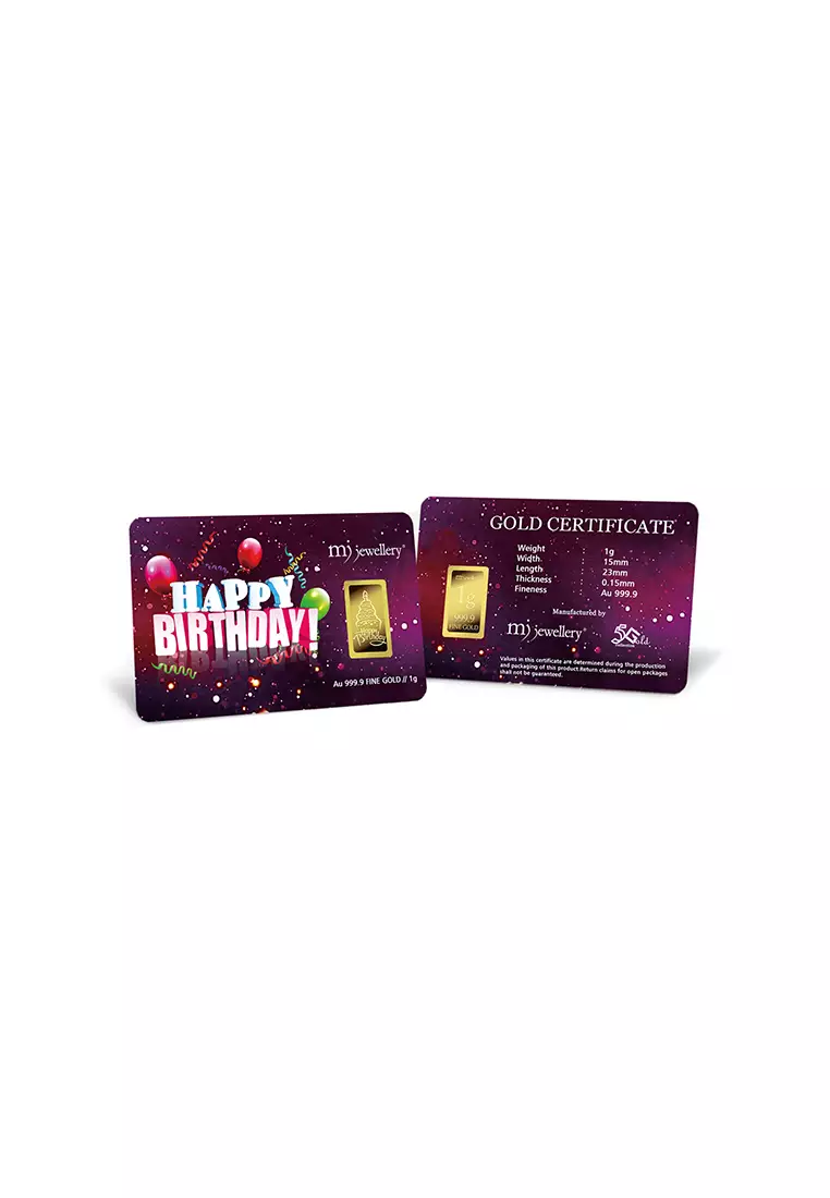 MJ Jewellery5G Gold Collection 999.9/24K Happy Birthday Series Gold Bar (1g)18550.0015470.00