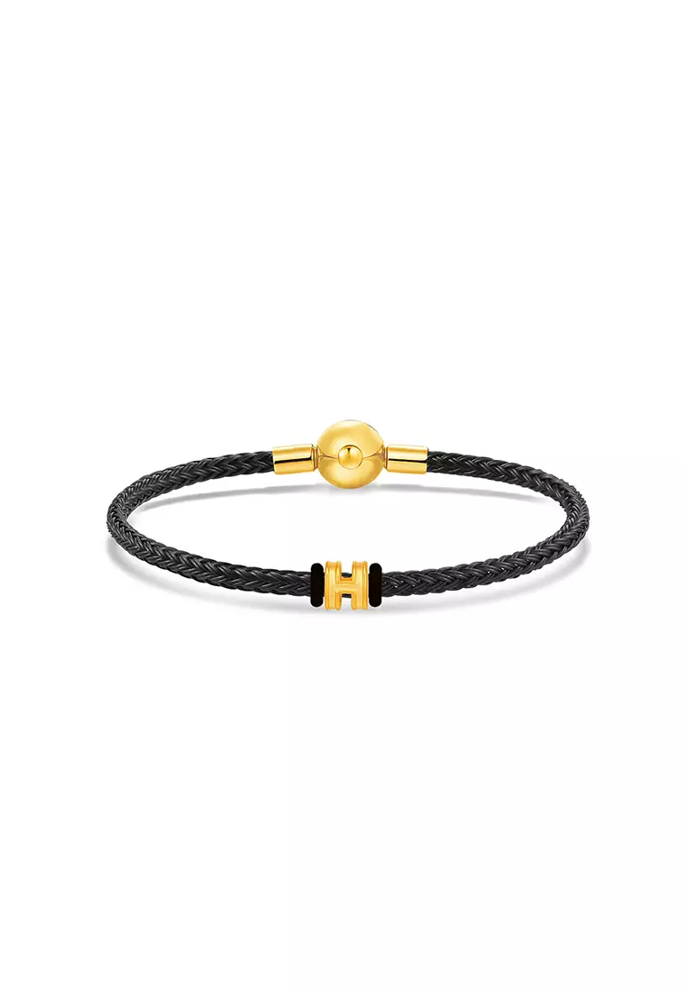 MJ JewelleryTHE Mix Collection 999.9/24K Pure Gold Mini H Charm Black Steel Wire Clasp Bracelet Set L11-B8047405.004025.00