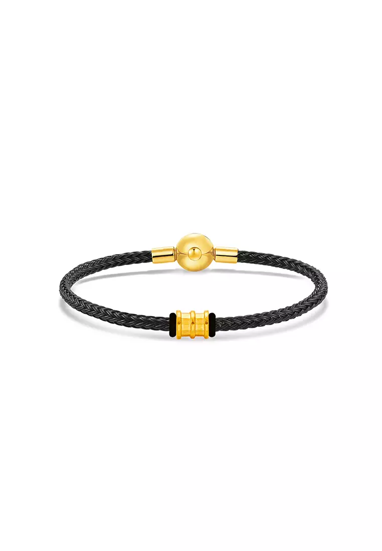 MJ JewelleryTHE Mix Collection 999.9/24K Pure Gold Mini Tube Ring Charm Black Steel Wire Clasp Bracelet Set L11-B8017405.004025.00