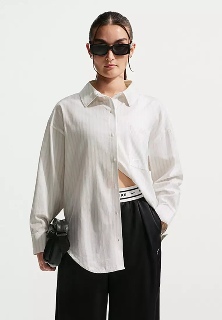 Sportswear Chill Poplin Oversized Woven Long-Sleeves Striped Top