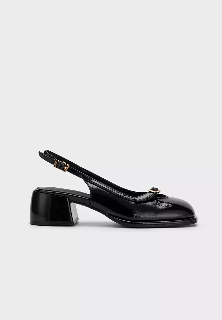 STEP-WIDE SQUARE TOE SLINGBACK CHUNKY HEEL