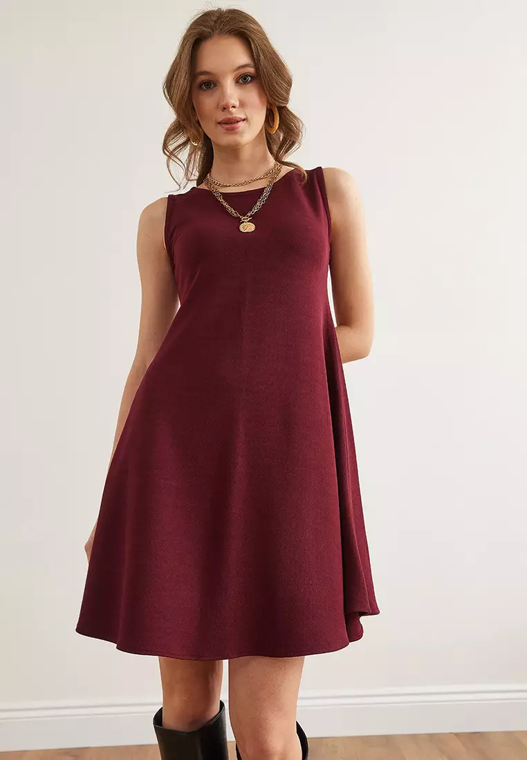 Crew Neck Flared Knitted Crepe Dress