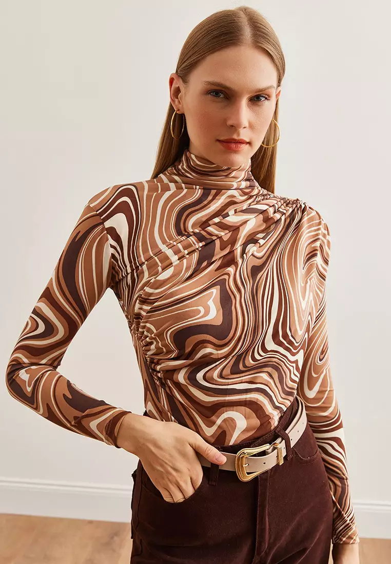 Drape Detailed Flowy Stylish Blouse