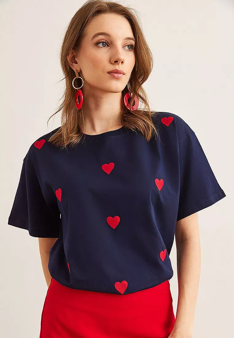 Heart Embroidered Cotton Regular Fit T-Shirt