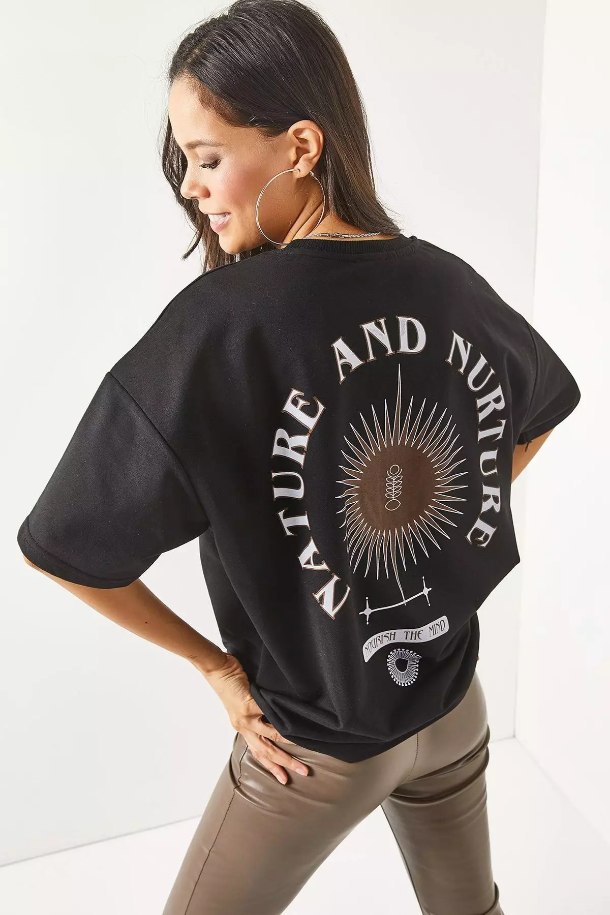 Symbol Front Back Printed 2 Thread Unisex Oversize T-Shirt
