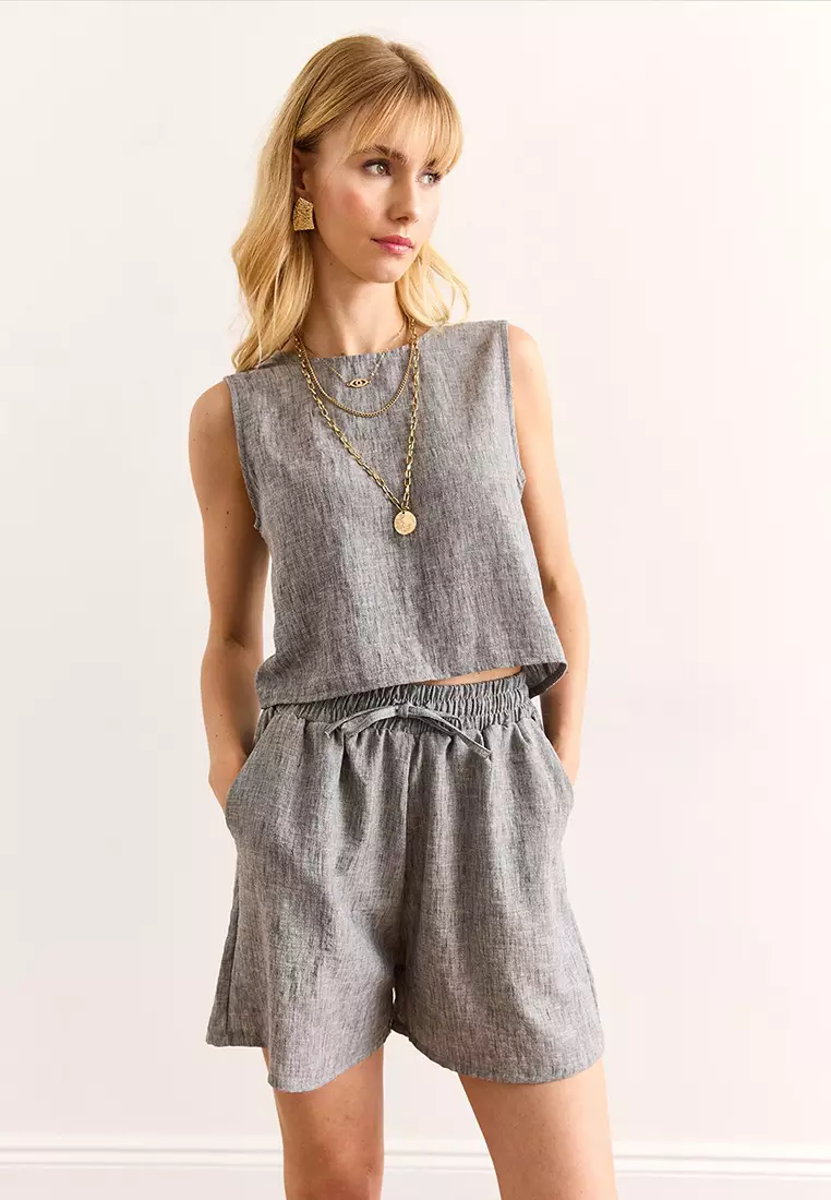 OlalookTop Back Button Blouse Bottom Pocket Shorts Set3019.002198.00