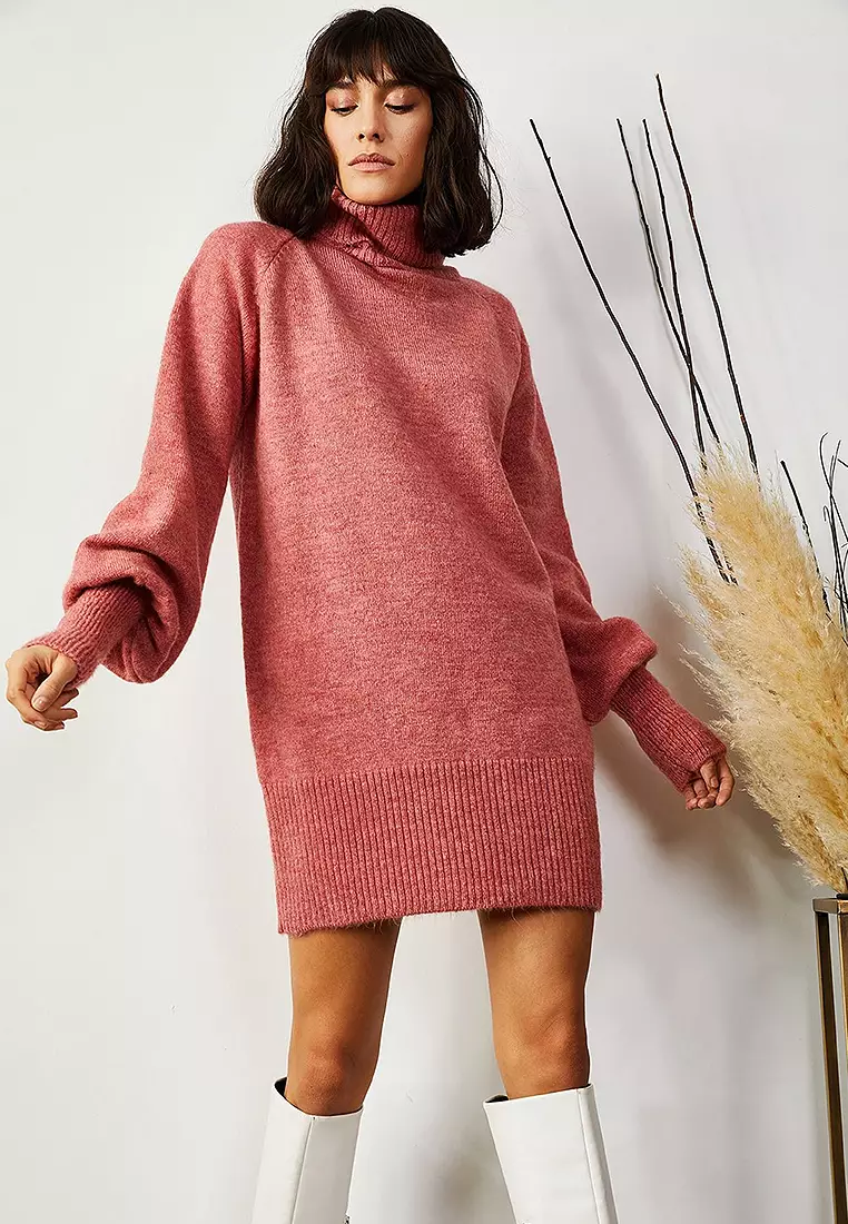 OlalookTurtleneck Balloon Sleeve Loose Knitwear Dress3249.002862.00