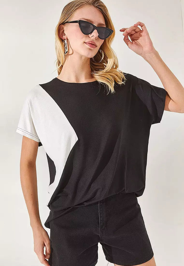 OlalookWomen's Black Color Block Bat Knitted Viscose Blouse BLZ-190022831039.00868.00