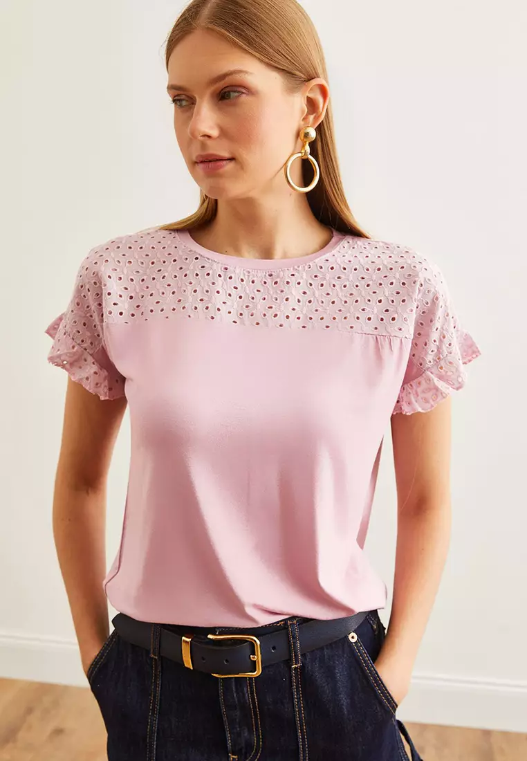 Women's Dried Rose Top Scallop Sleeve Flounce T-Shirt BLZ-19000979