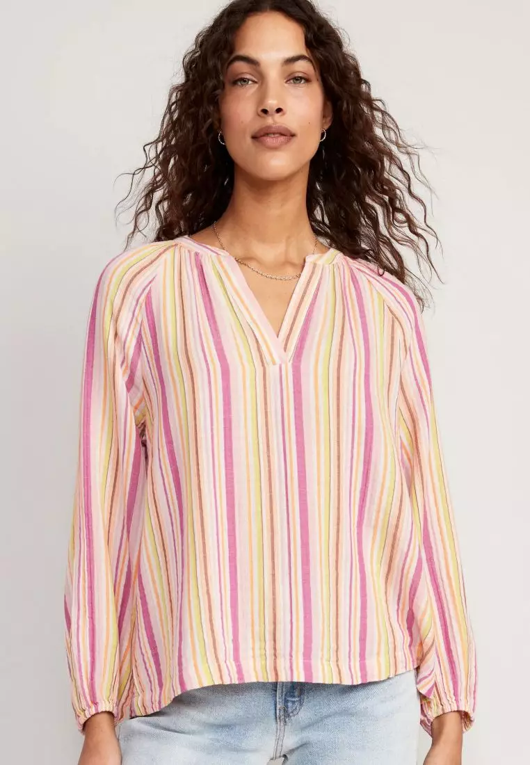 Old NavyLong-Sleeve Striped Split-Neck Top for Women2450.001250.00