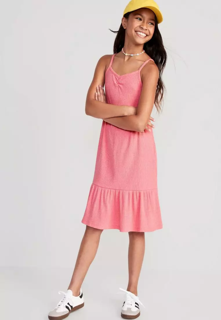 Rib-Knit Cinch-Front Swing Dress For Girls