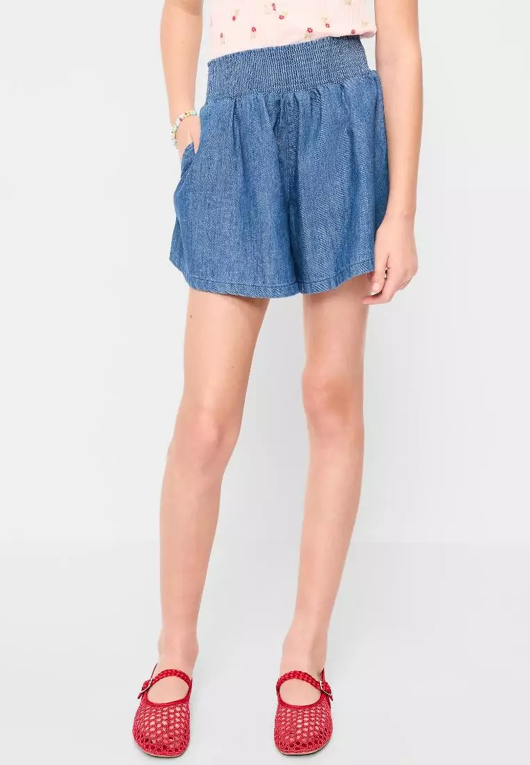Smocked-Waist Chambray Shorts for Girls