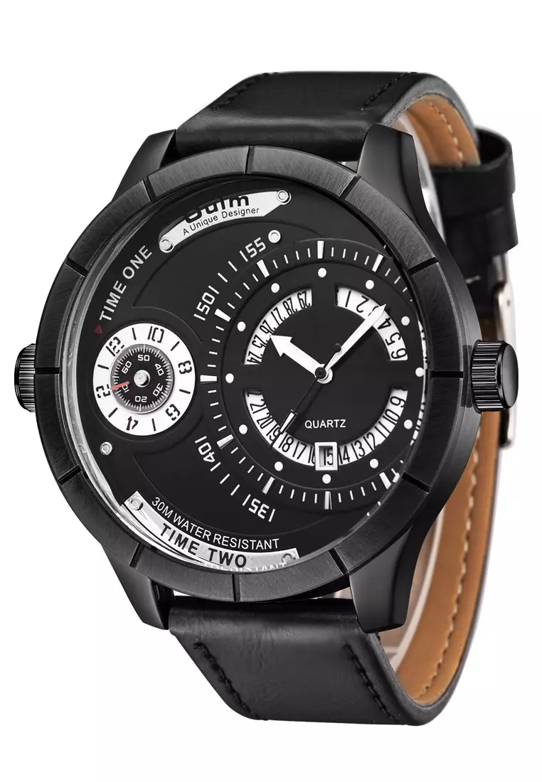 OULMVery Large Men's Quartz Watch - 52x52mm - IP Black Steel case, Black Dial, Black Strap8000.002399.00